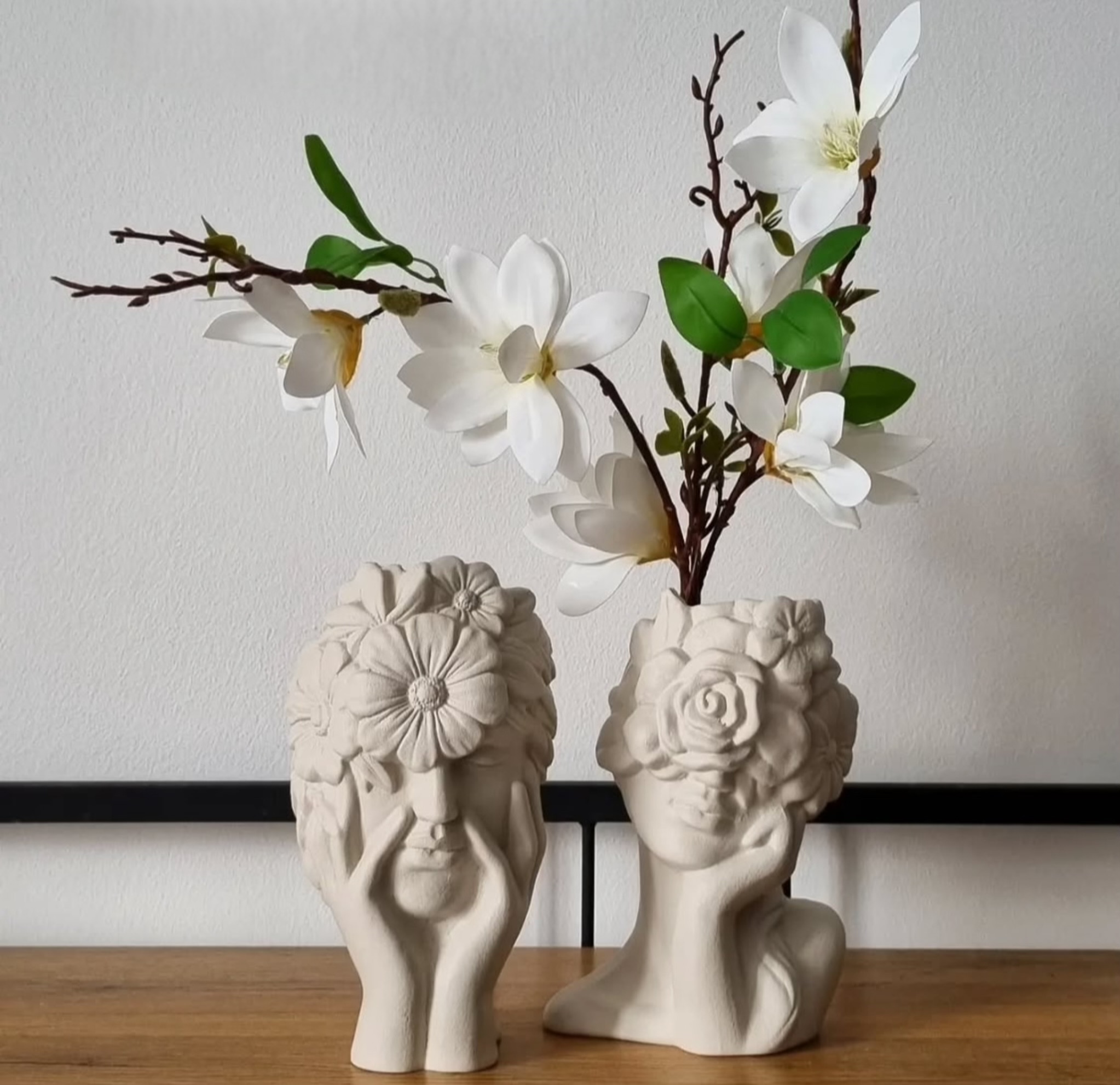 گلدان چهره و مجسمه گیسو بلند