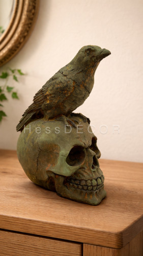 مجسمه جمجمه و کلاغ فسیل