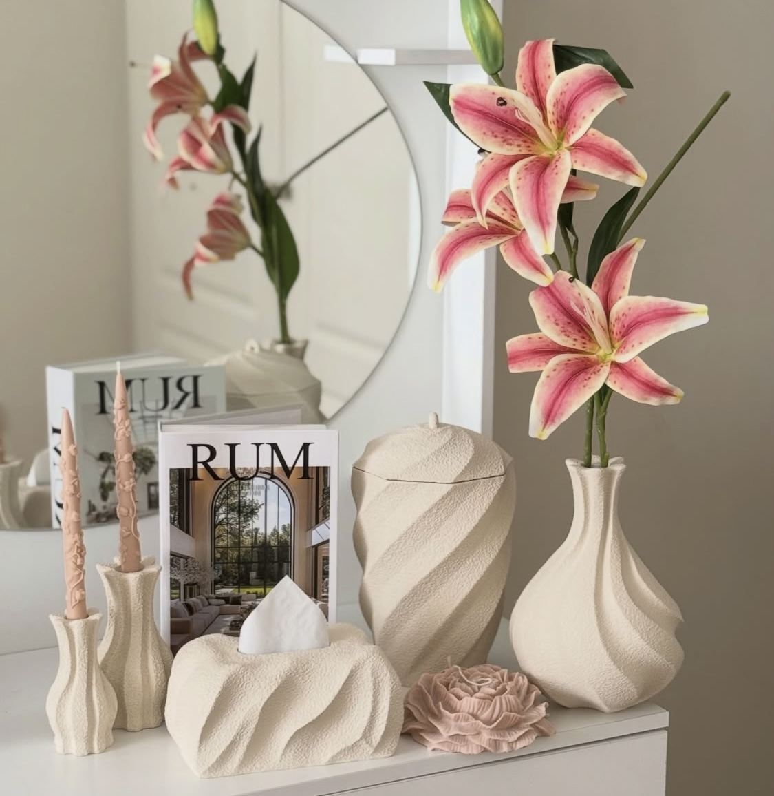 گلدان،کاور دستمال و شمعدان تدی بافت دار